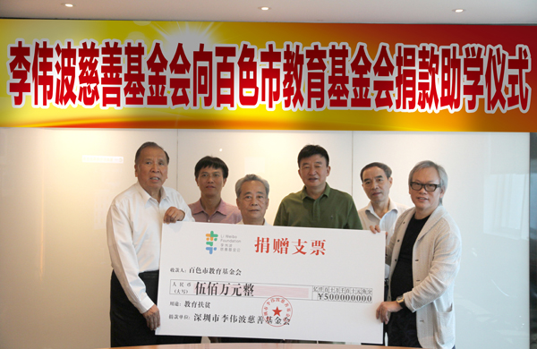 李伟波基金会捐款500万元资助百色市教育事业 2017-08-10