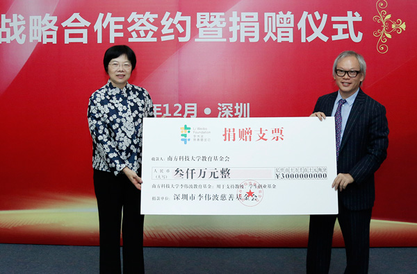 李伟波慈善基金会向南方科技大学捐赠3000万元人民币 2018-01-05