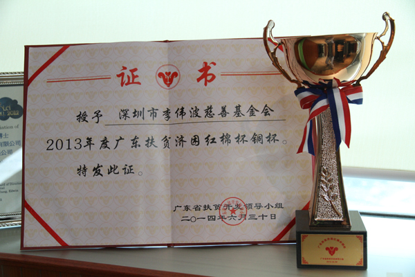 在6月30日举行的广东扶贫济困日活动启动仪式上,李伟波慈善基金会凭借在深圳罗湖区组织的结对帮扶活动中突出的爱心表现,被授予了“广东扶贫济困红棉杯”铜杯奖。