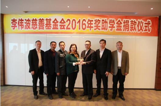12月23日上午,李伟波慈善基金会2016年度奖助学金捐款仪式在集团总部举行。共有24名集团员工子女获得了30余万元奖助学金。