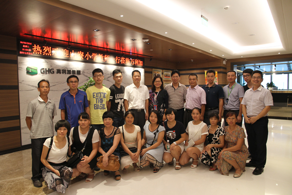 8月9日,李伟波慈善基金会资助茂名市电白区山寮小学全体教职员工及山寮村新农村建设促进会会长一行二十余人到深圳市螺岭小学考察学习,并到万利加集团总部参观交流。