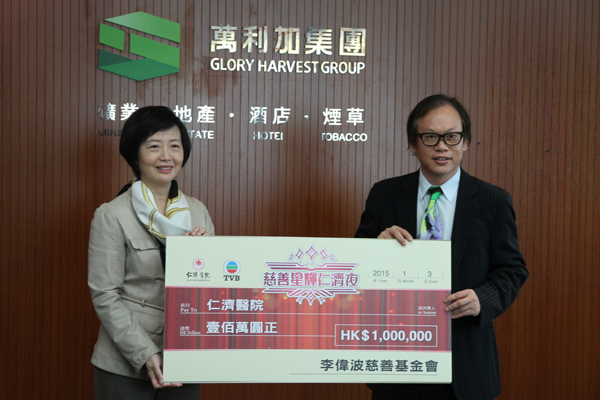 11月28日,集团李伟波主席再次向香港仁济医院捐赠善款100万港币,善款将用于仁济医院儿童之家,以推行〈生命规划师〉计划。仁济医院董事局主席苏陈伟香女士对李主席的慷慨捐资表示了感谢,并向李主席颁发了纪念奖杯。