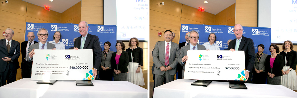 与麻省大学医学院校长Michael F. Collins签署捐赠协议 捐赠首期75万美元李伟波奖学金