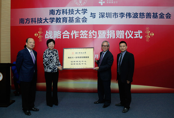 李伟波慈善基金会向南科大捐赠3000万元用于支持教授、学生创业,旨在落实国家创新驱动发展战略,共同打造高水平产学研合作平台,以支持南科大创建世界一流大学。